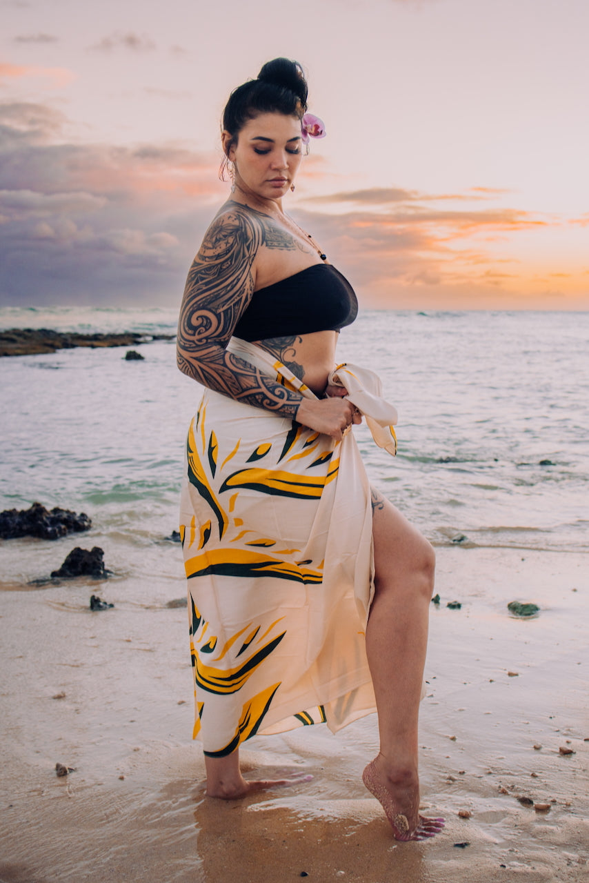 A timeless island essential, our Heliconia Tanoa Ie Lavalava is made for life on the islands—whether you're heading to the beach, a pāʻina, or just cruising. Lightweight and easy to style, wear it as a skirt, dress, or hulu-style cover-up with prints that reflect the beauty of our ʻāina.