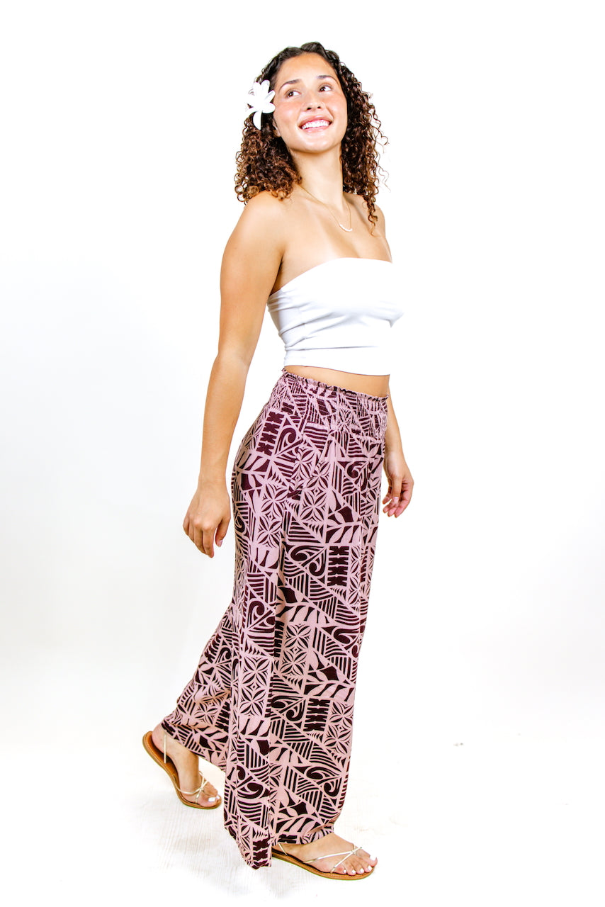 Our Koru Pant captures the essence of elegance and royalty with the easy and effortless style from Tanoa. This pant features a shirred waistband and wide, full length pants, and pockets. Pair it with our Koru Infinity Scarf worn as a halter top for a matching set look. Check out the rest of our Koru Collection and match with the whole family!