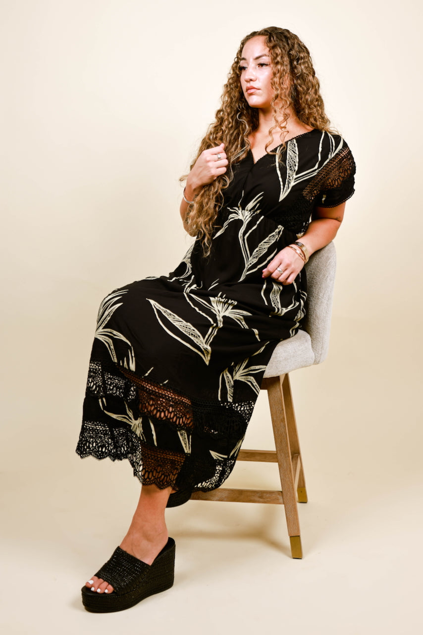 Lovely in lace. Our Vaimoso Ladies Dress TD218 features a v-neckline with trim detail, short sleeves with lacing detail, an empire waistline, a maxi skirt with gorgeous detailing, and pockets! Check out our entire Vaimoso Collection for more pieces to mix and match with, as well as styles for the whole family.