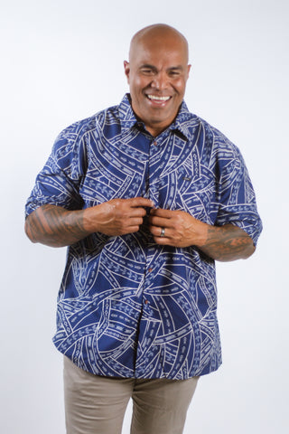 MENS COTTON TANOA SHIRT KERAI SS3738-TS (ALL SALES FINAL)