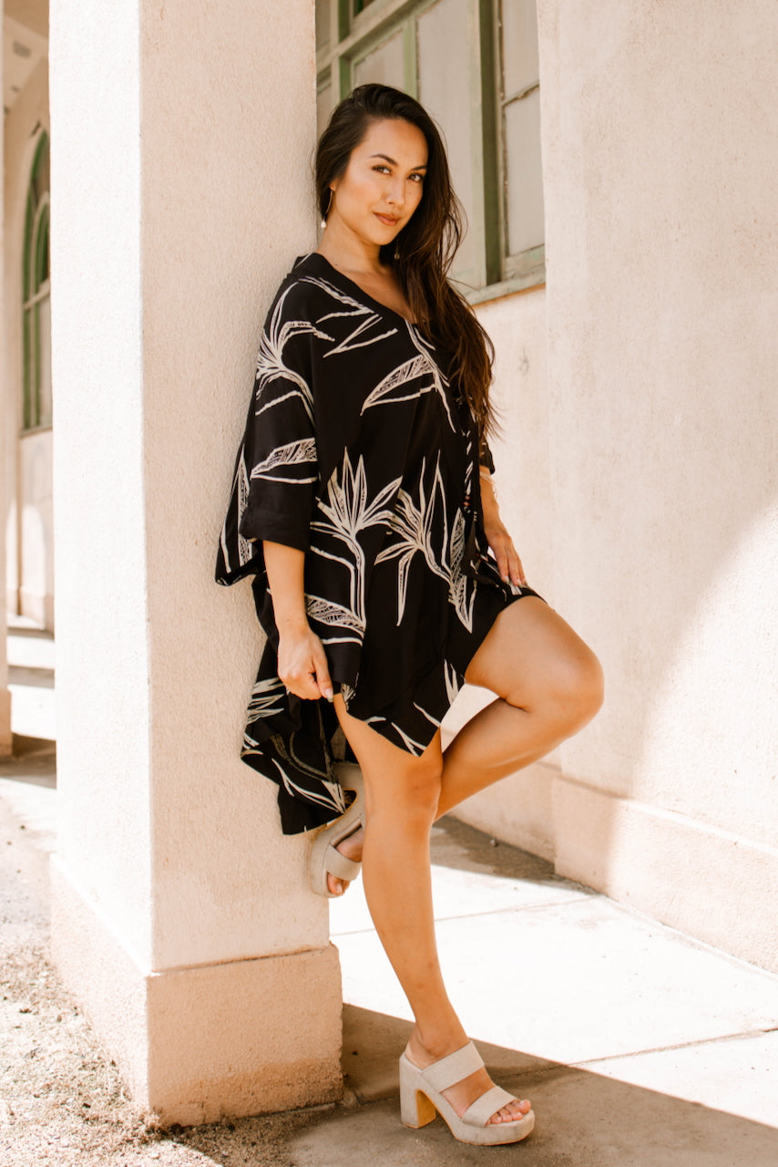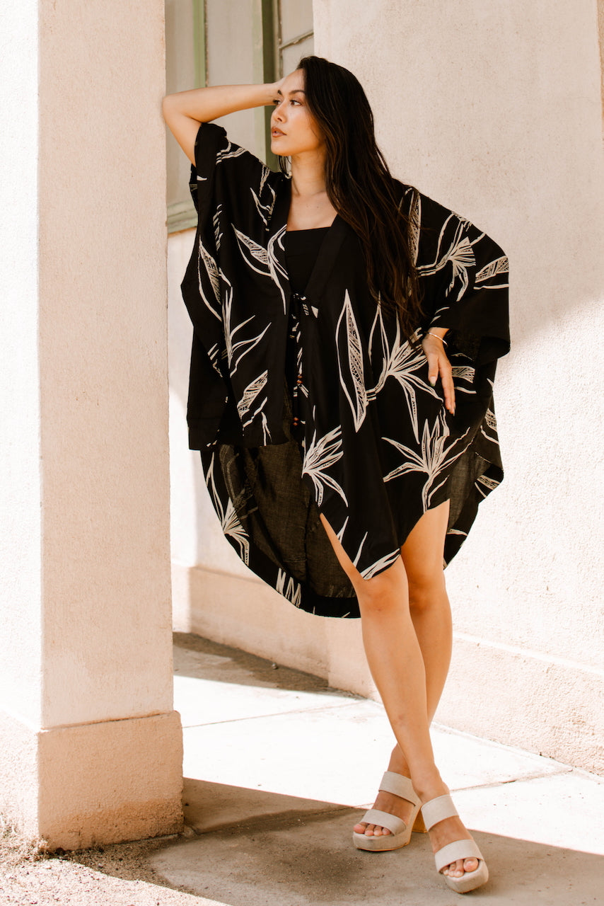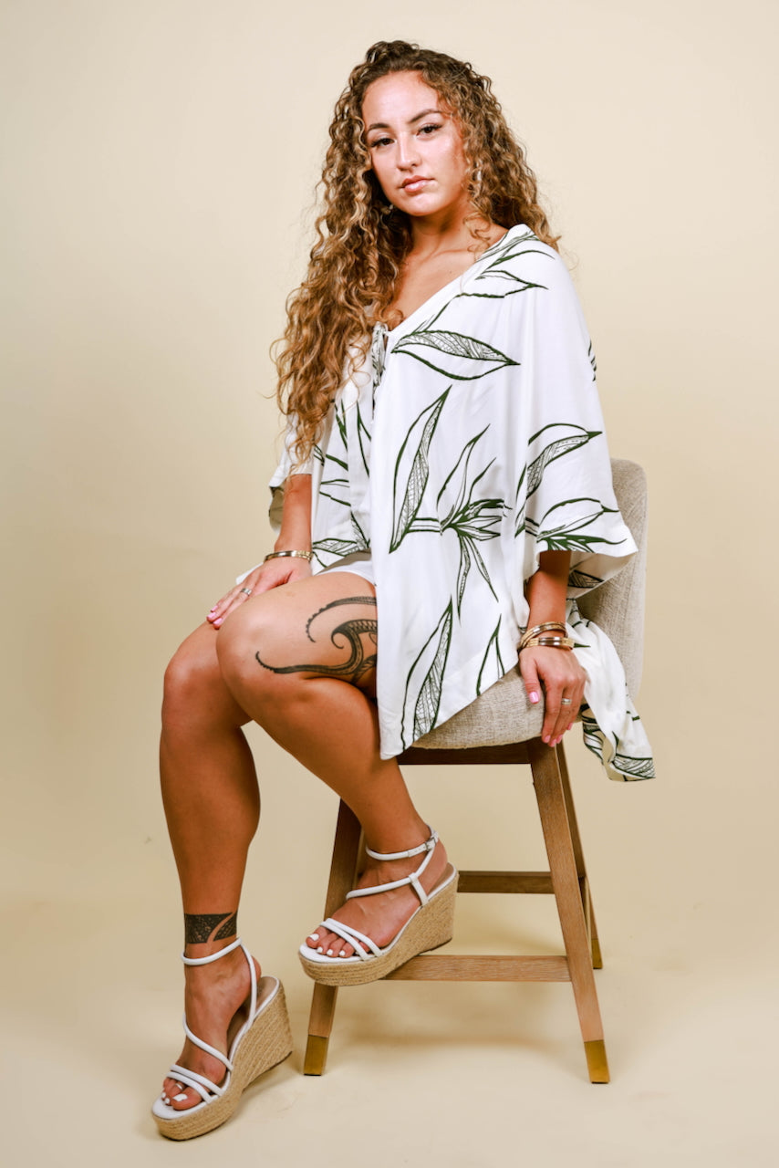 Our Vaimoso Ladies Top is poetry in motion, and you will be too. This oversized flowing top features a loose neckline to be worn on, or off, the shoulder, a beaded tie at the bust, billowing sleeves, and a cape like back. Perfect to pair with baggy jeans or with our Vaimoso Ladies Dress. Check out our entire Vaimoso Collection for more pieces to mix and match with, as well as styles for the whole family.